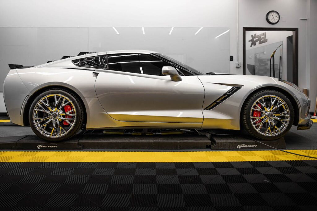 XPEL’s Corvette paint protection carries a 10-year warranty against yellowing, cracking, peeling, staining, and hazing, covering both film and labor.