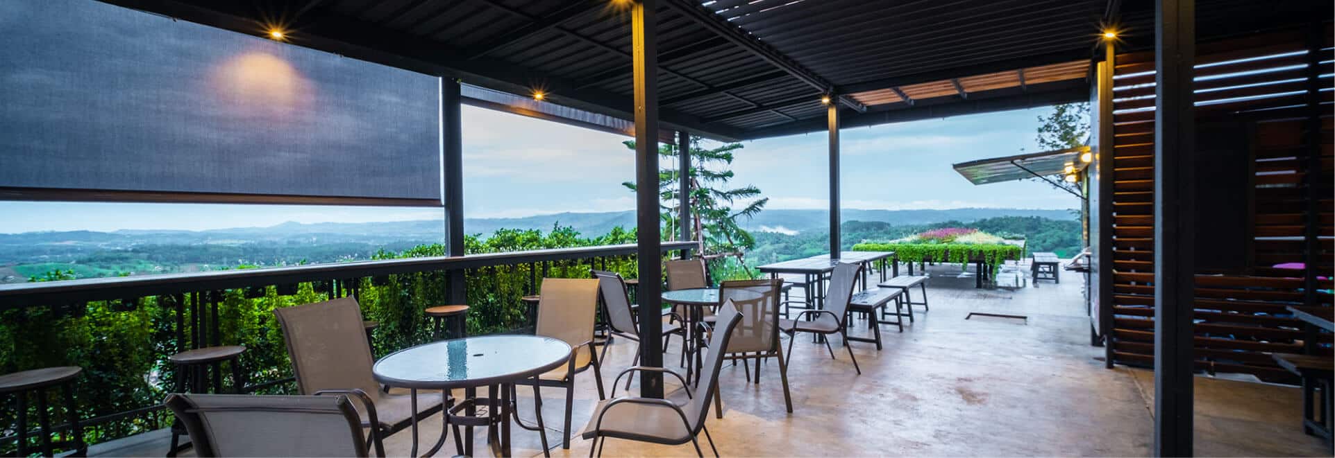 Our outdoor roller shades and blinds can withstand direct sunlight and other types of weather conditions.