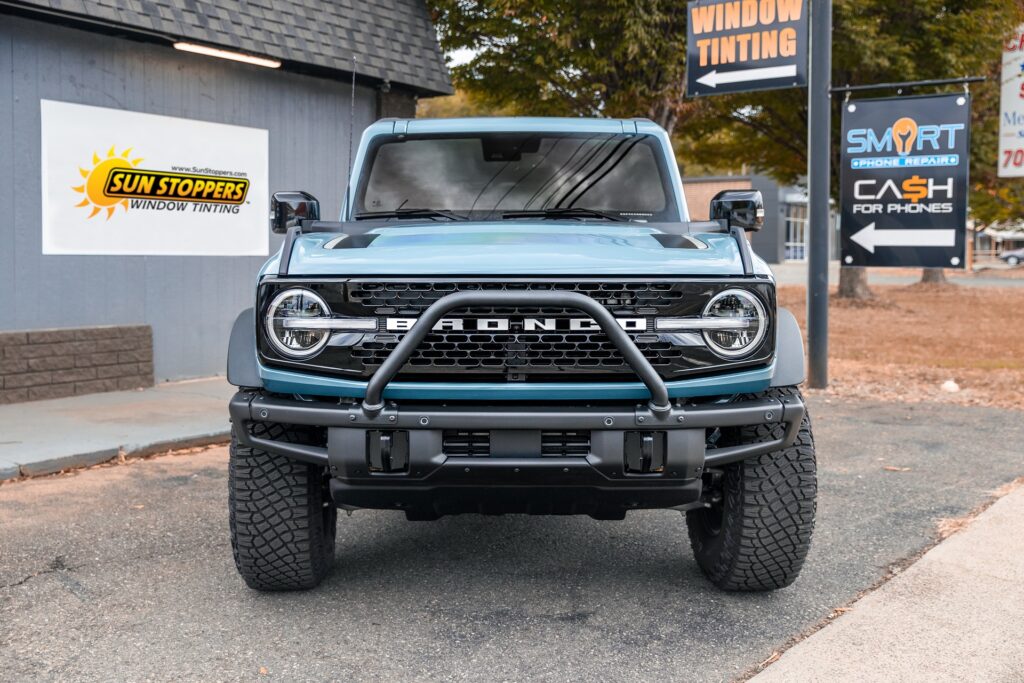 Take a look at this beautiful window tint job on this First Edition Ford Bronco! When you are looking to keep your Bronco cooler, more private, and reduce sun glare in your eyes while driving – then you need Ford Bronco window tinting services from Sun Stoppers!