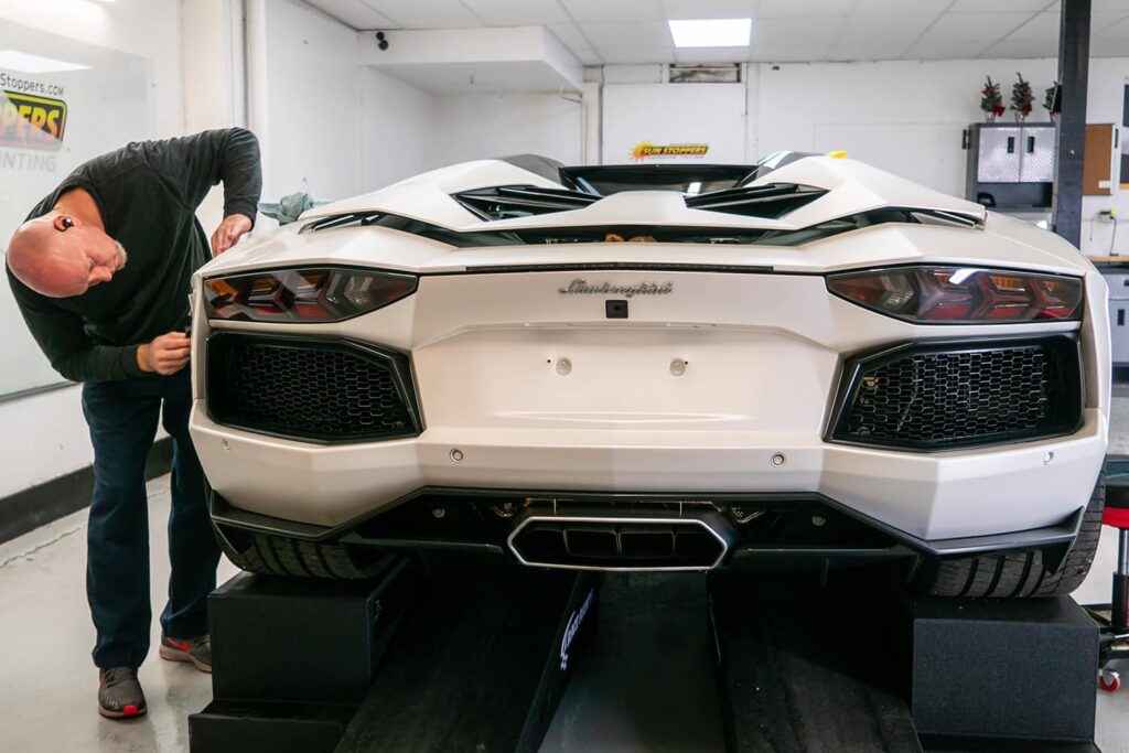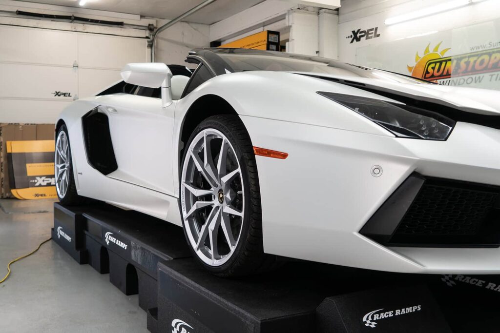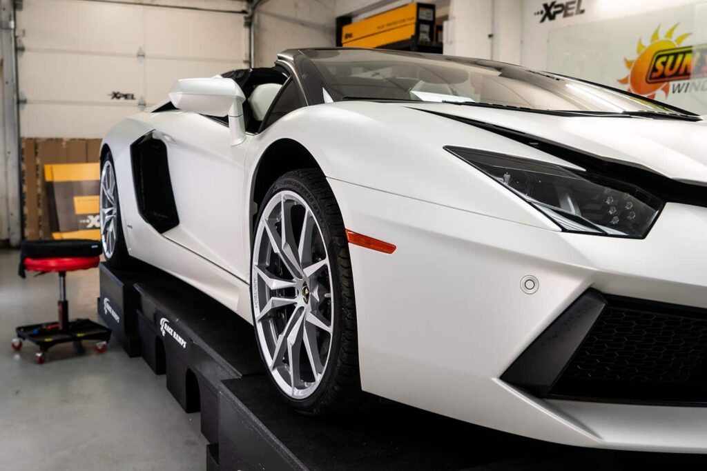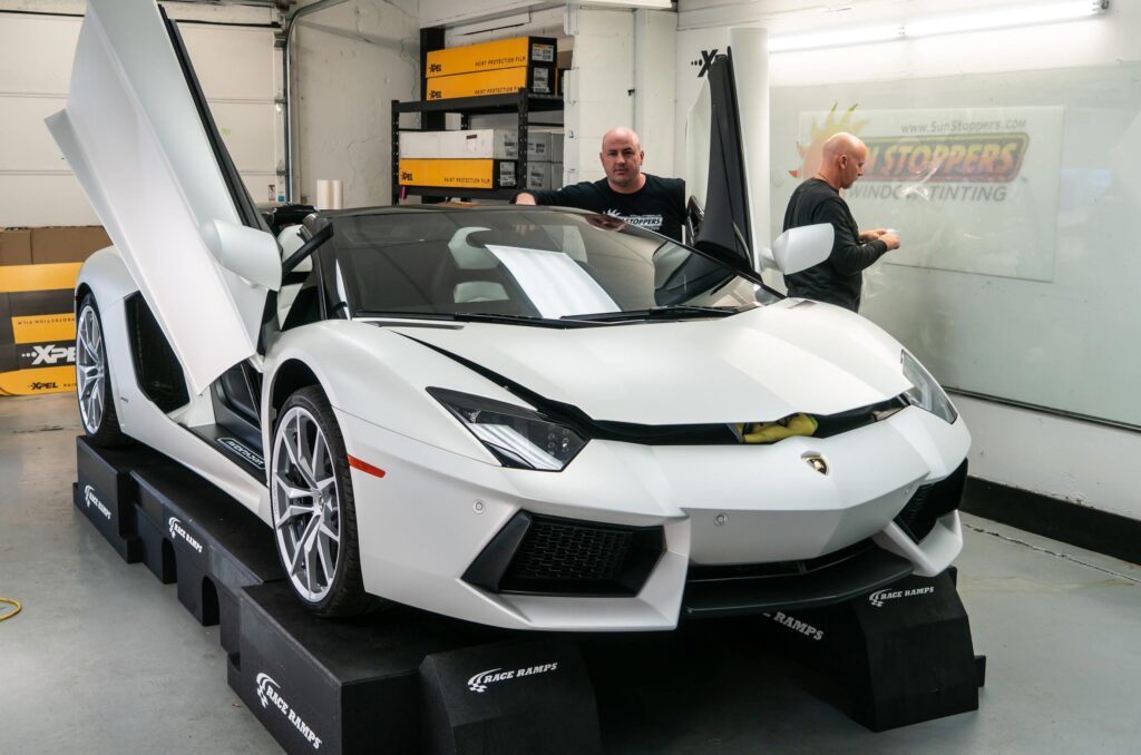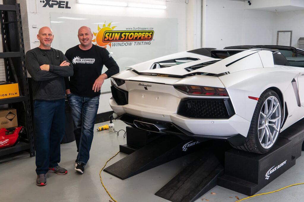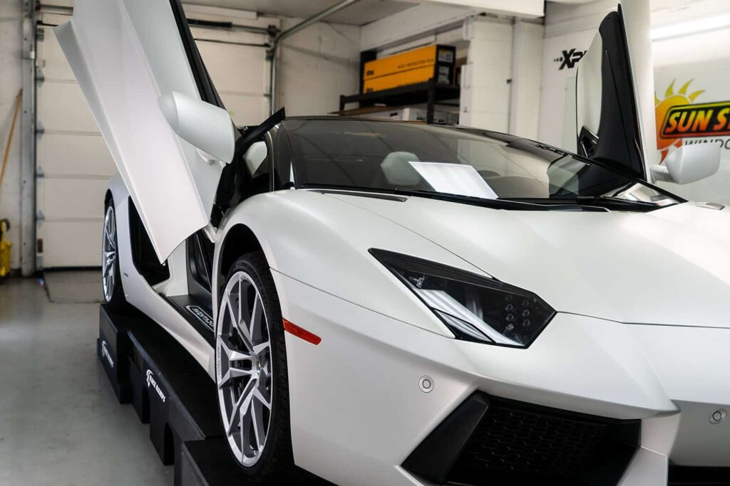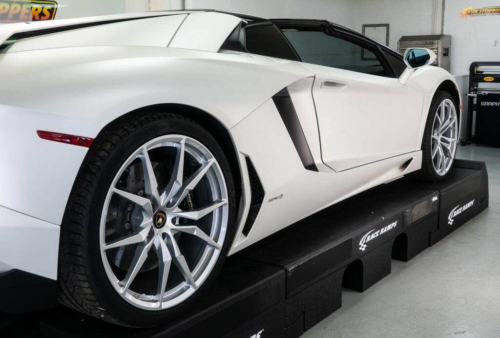 Take a look at this beautiful window tint job on this Lamborghini Aventador S Roadster! When you are looking to keep your Lamborghini more private, and reduce sun glare in your eyes while driving – then you need Lamborghini Aventador S Roadster window tinting services from Sun Stoppers!