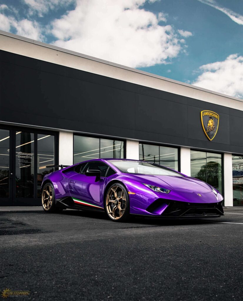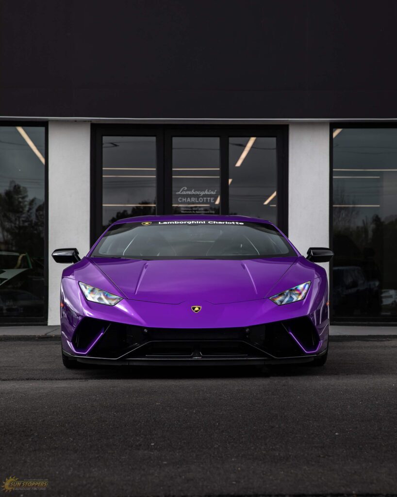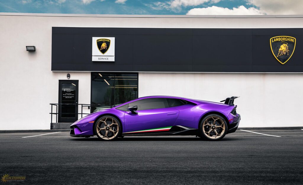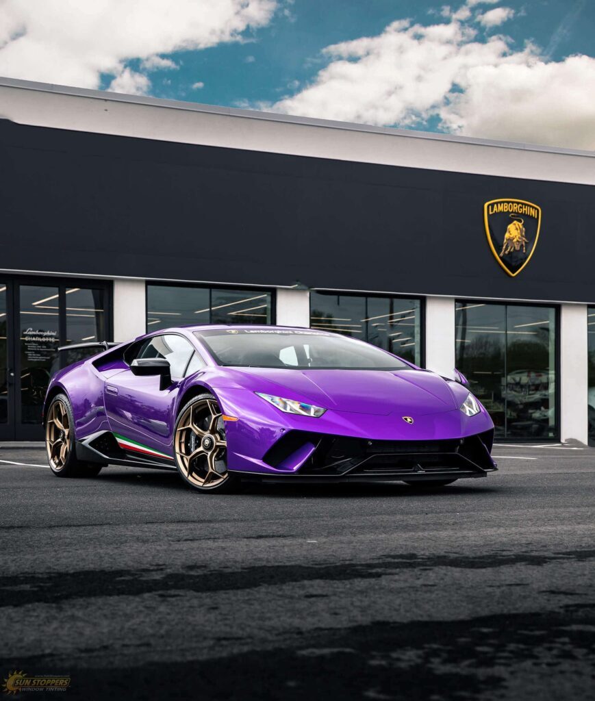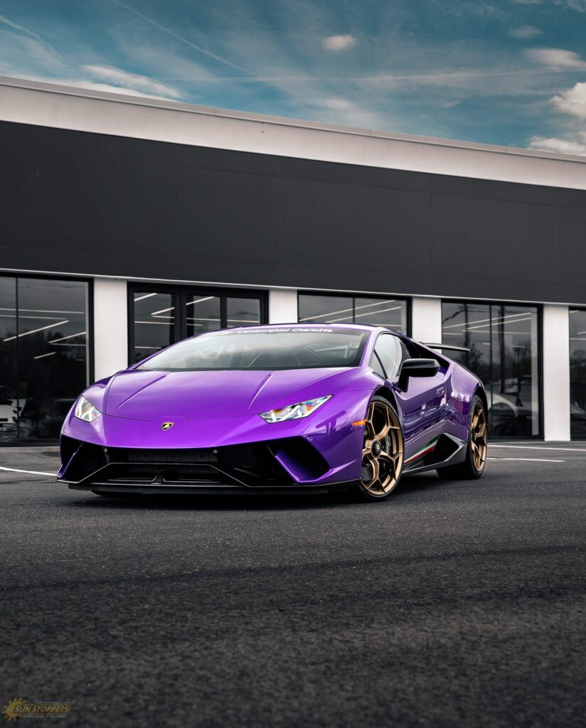 Take a look at this beautiful window tint job on this Lamborghini Perfomante! When you are looking to keep your Lamborghini more private, and reduce sun glare in your eyes while driving – then you need Lamborghini Perfomante window tinting services from Sun Stoppers!