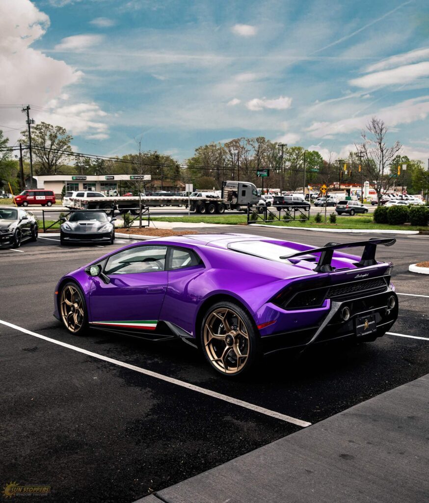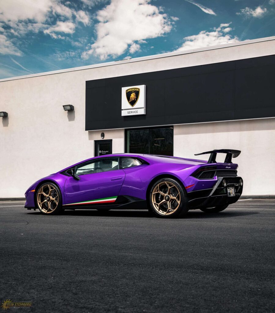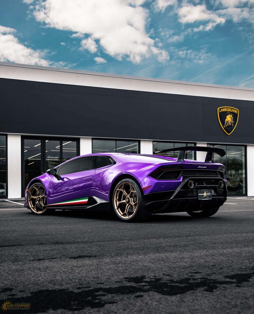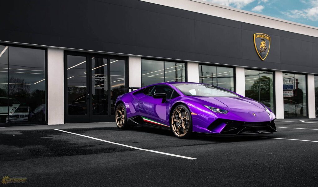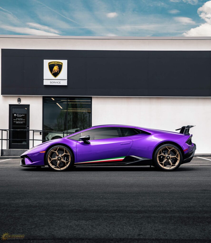 Take a look at this beautiful window tint job on this Lamborghini Perfomante! When you are looking to keep your Lamborghini more private, and reduce sun glare in your eyes while driving – then you need Lamborghini Perfomante window tinting services from Sun Stoppers!