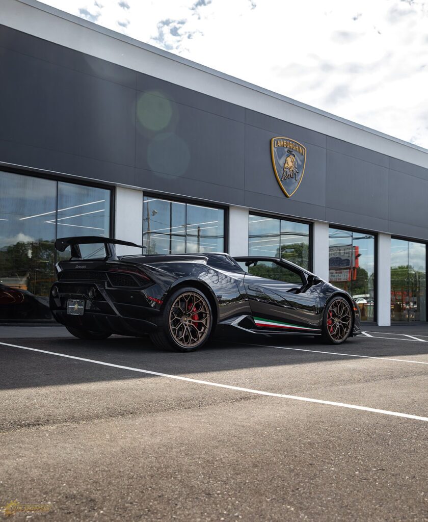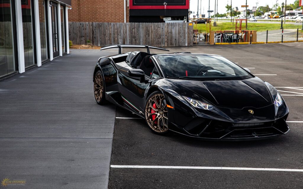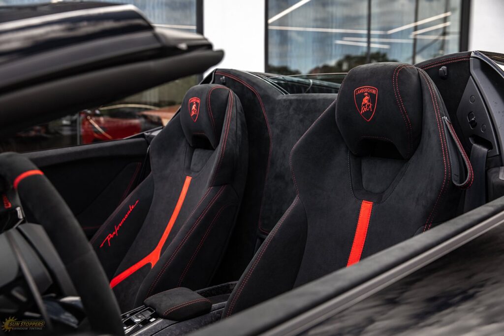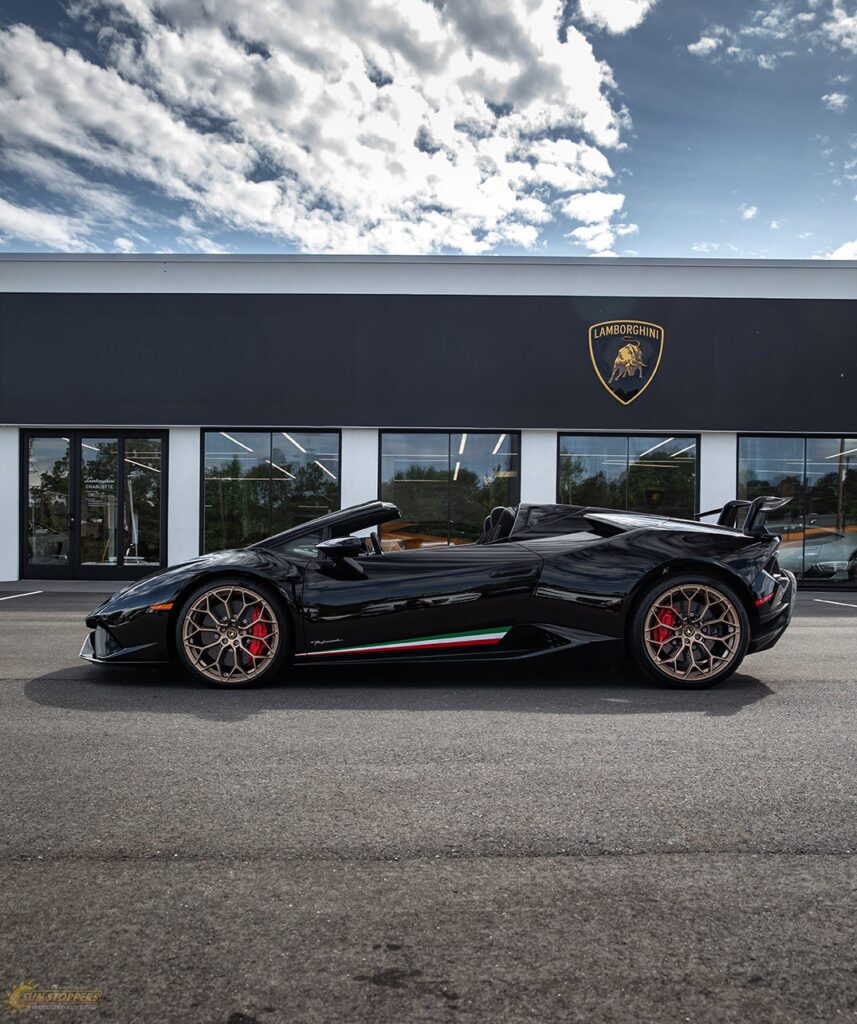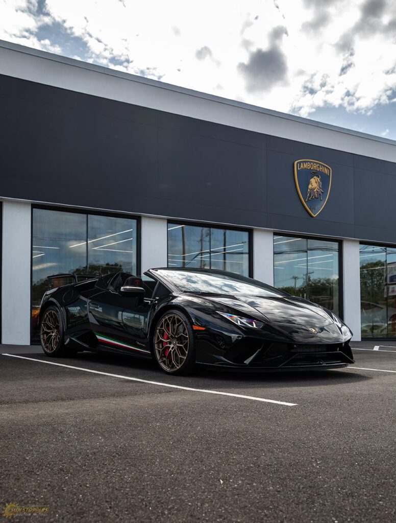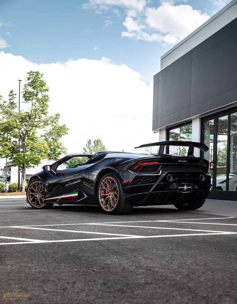 Take a look at this beautiful window tint job on this Lamborghini Perfomante! When you are looking to keep your Lamborghini more private, and reduce sun glare in your eyes while driving – then you need Lamborghini Performante window tinting services from Sun Stoppers!