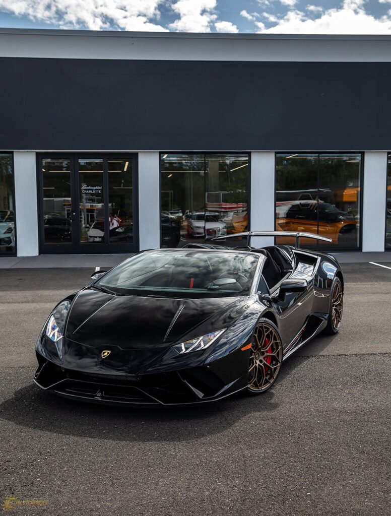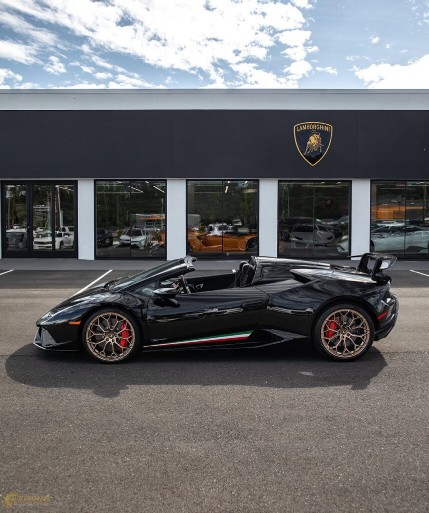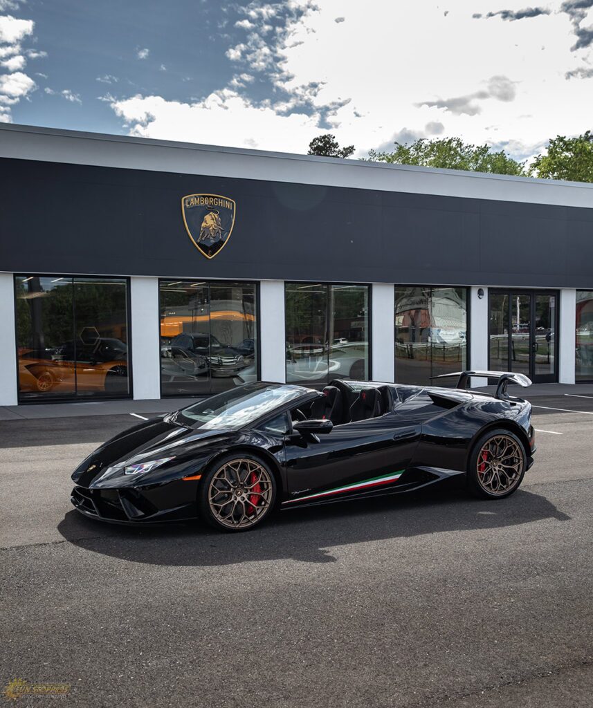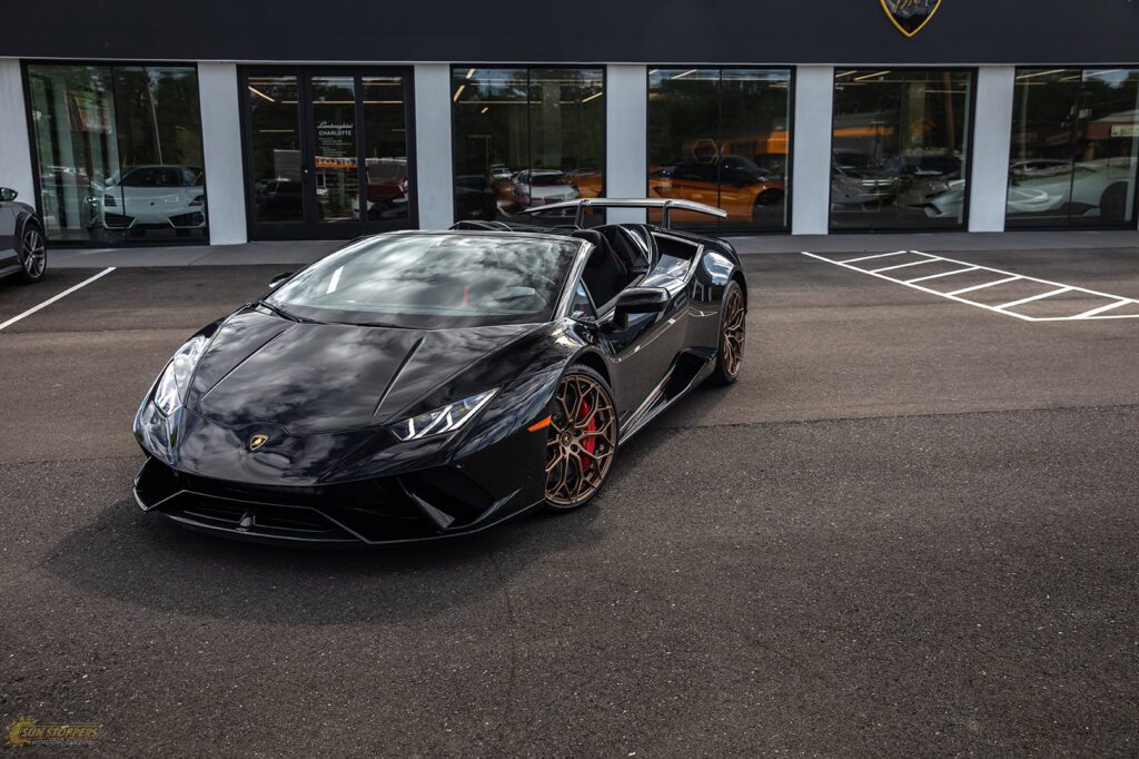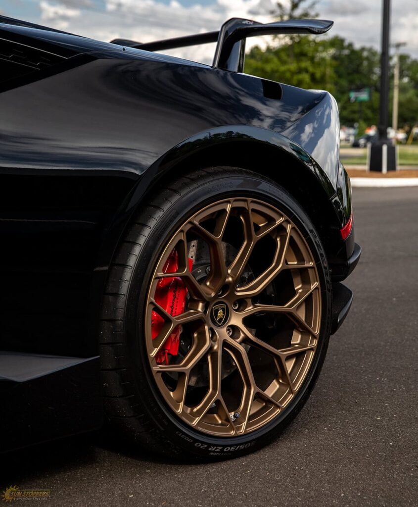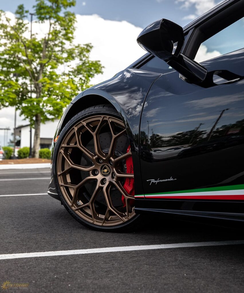 Take a look at this beautiful window tint job on this Lamborghini Perfomante! When you are looking to keep your Lamborghini more private, and reduce sun glare in your eyes while driving – then you need Lamborghini Performante window tinting services from Sun Stoppers!