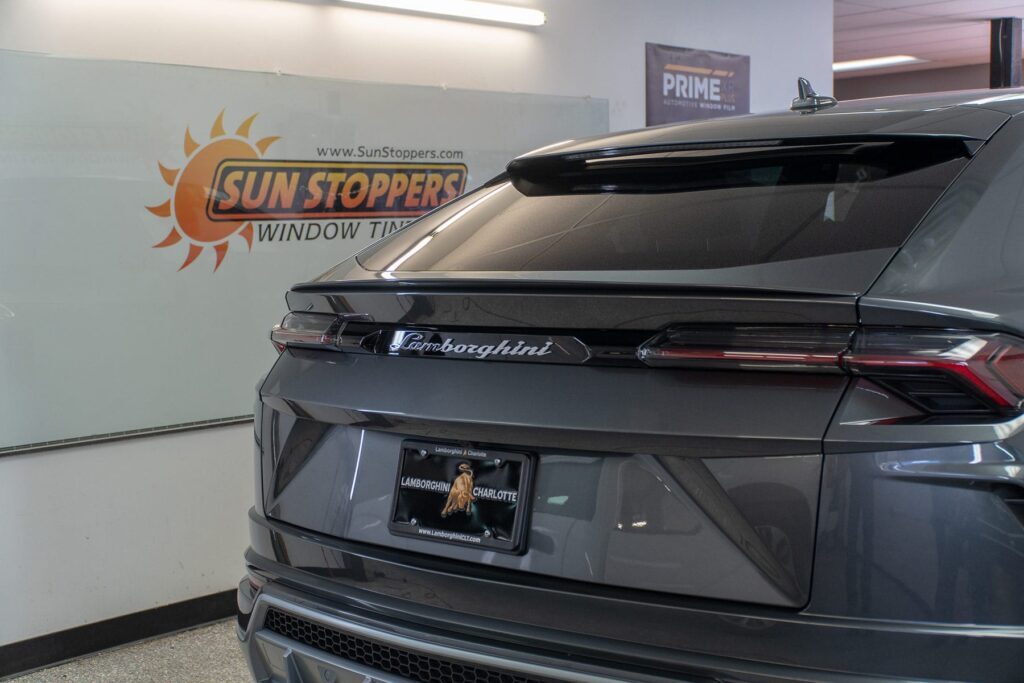 Take a look at this beautiful window tint job on this Lamborghini Urus! When you are looking to keep your Lamborghini more private, and reduce sun glare in your eyes while driving – then you need Lamborghini Urus window tinting services from Sun Stoppers!