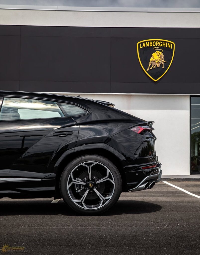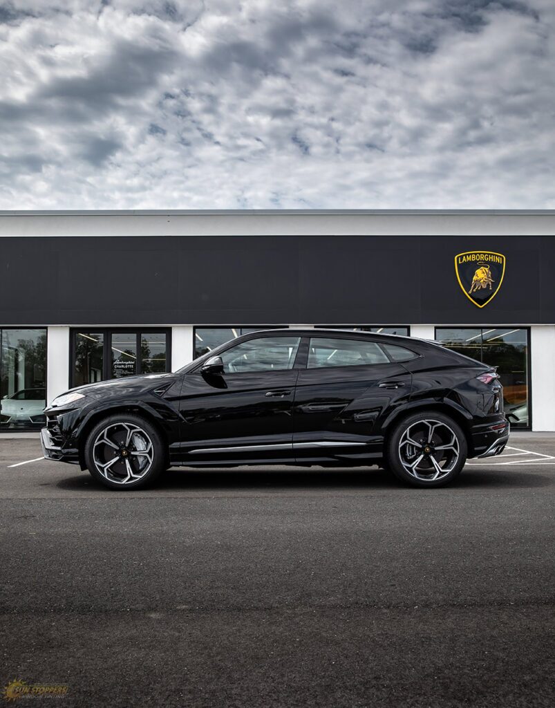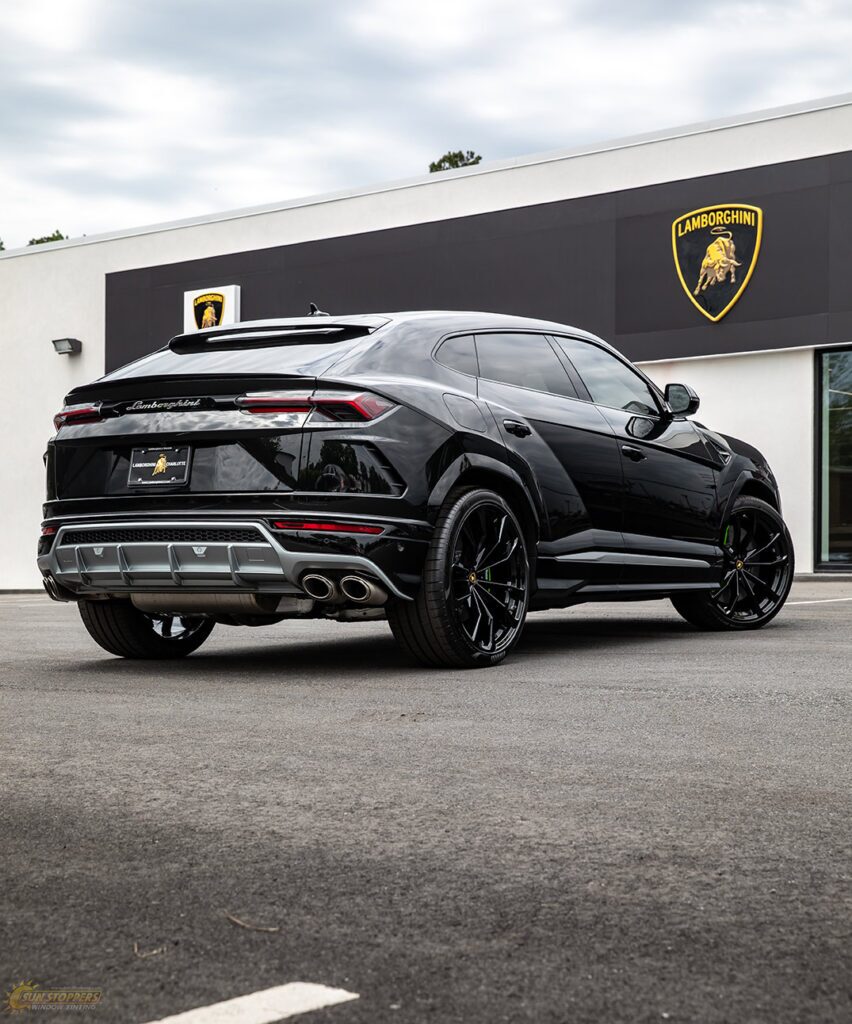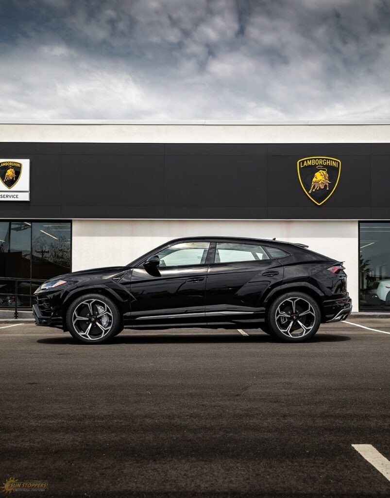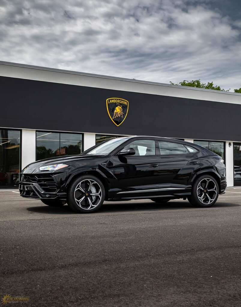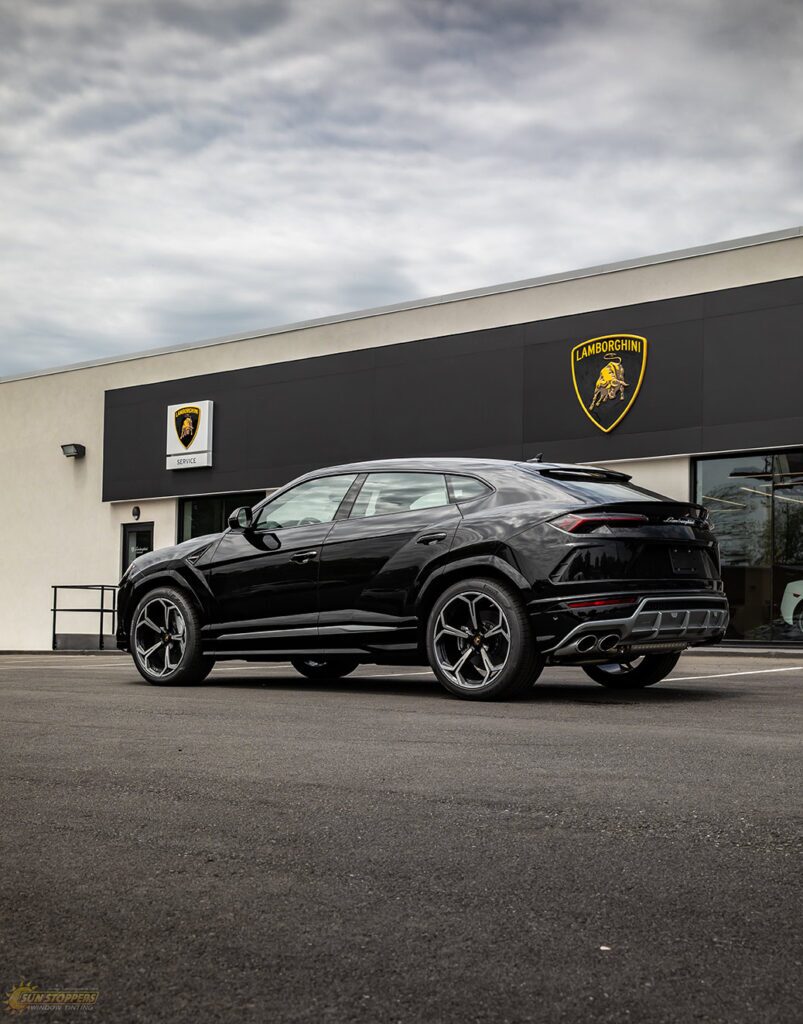 Take a look at this beautiful window tint job on this Lamborghini Urus! When you are looking to keep your Lamborghini more private, and reduce sun glare in your eyes while driving – then you need Lamborghini Urus window tinting services from Sun Stoppers!