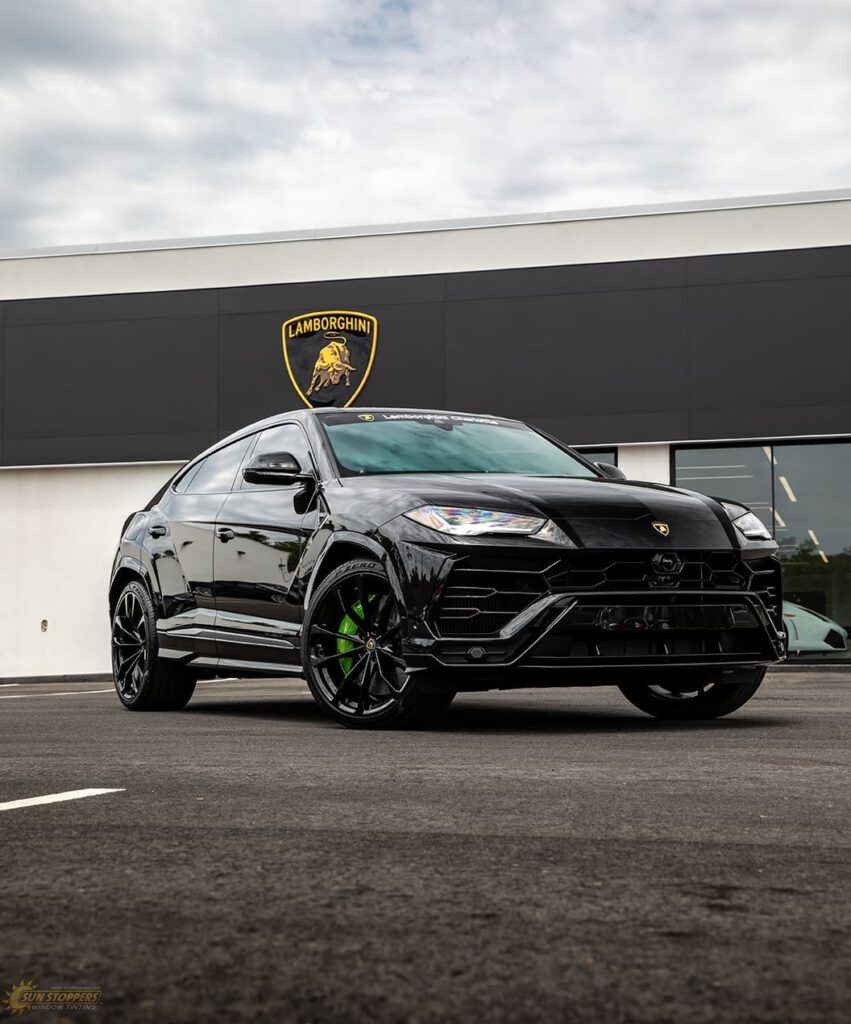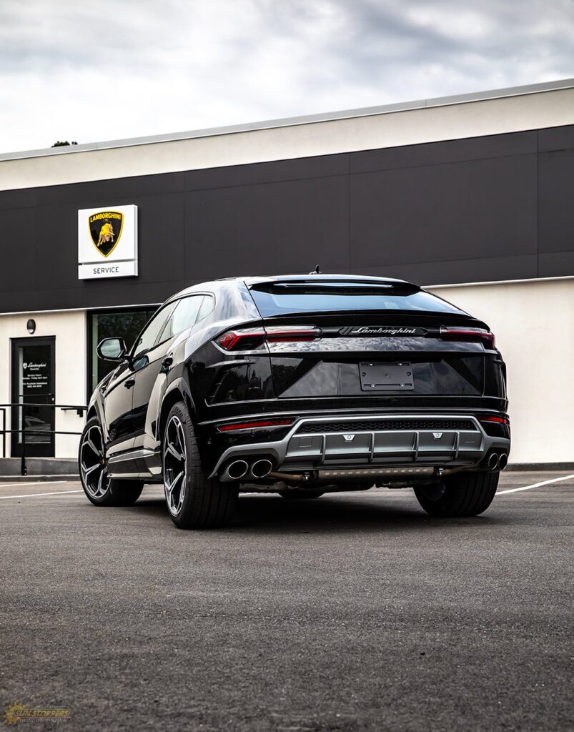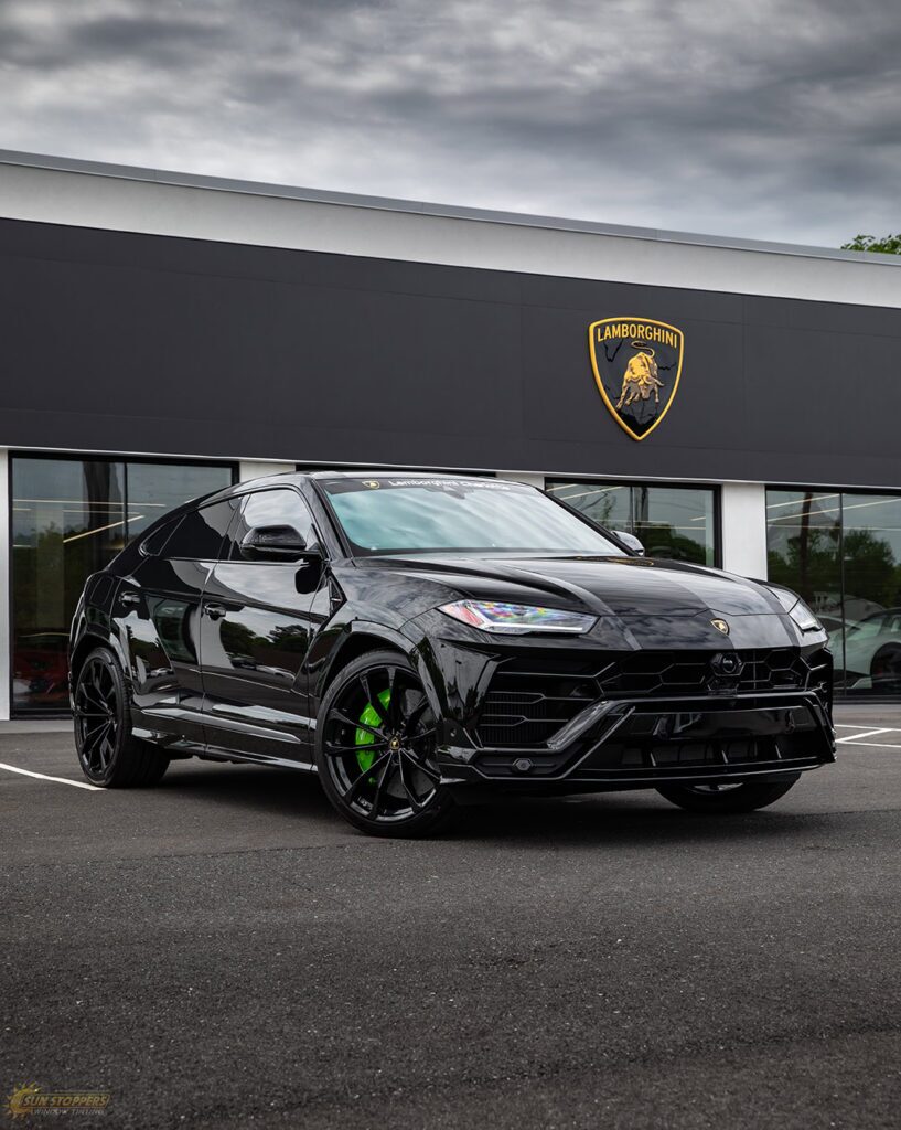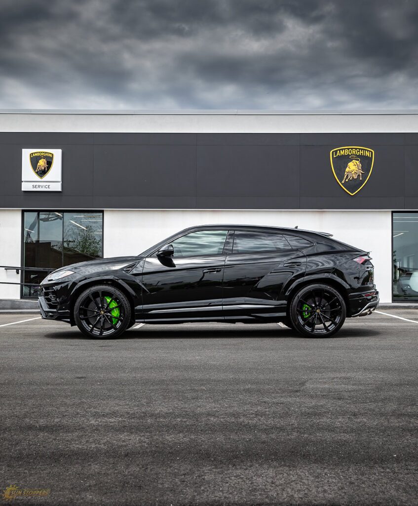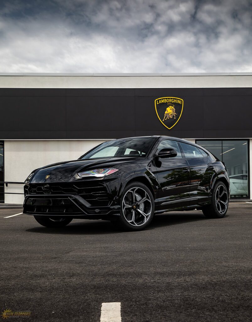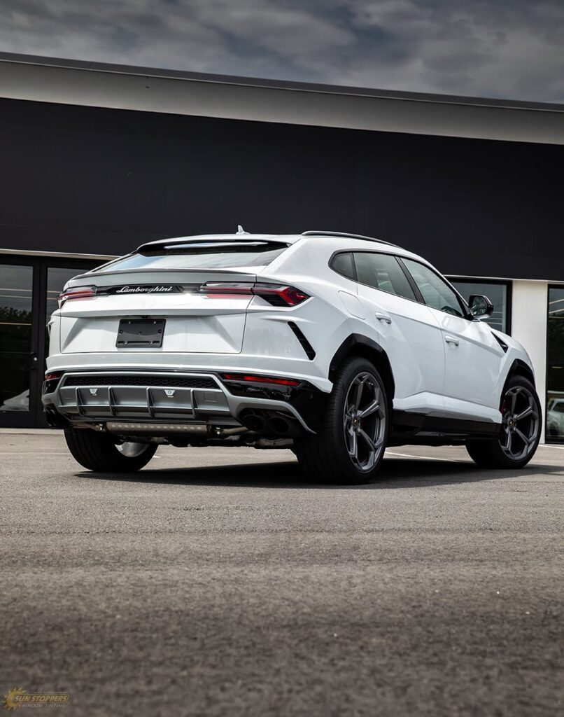 Take a look at this beautiful window tint job on this Lamborghini Urus! When you are looking to keep your Lamborghini more private, and reduce sun glare in your eyes while driving – then you need Lamborghini Urus window tinting services from Sun Stoppers!
