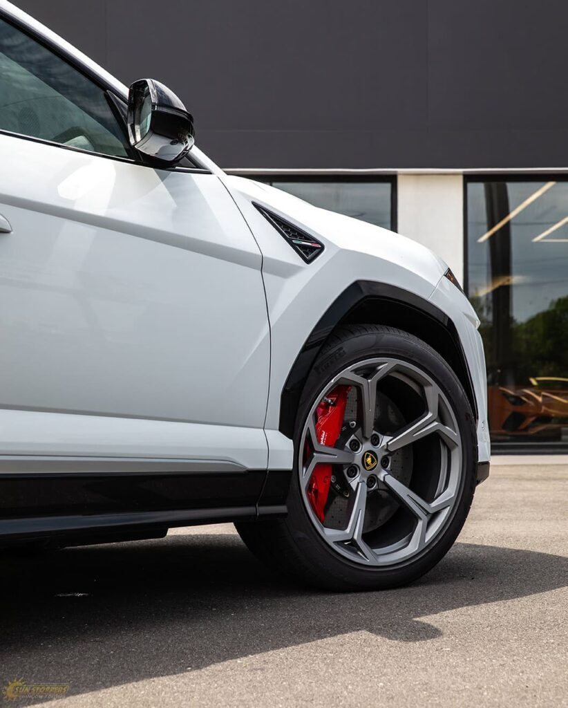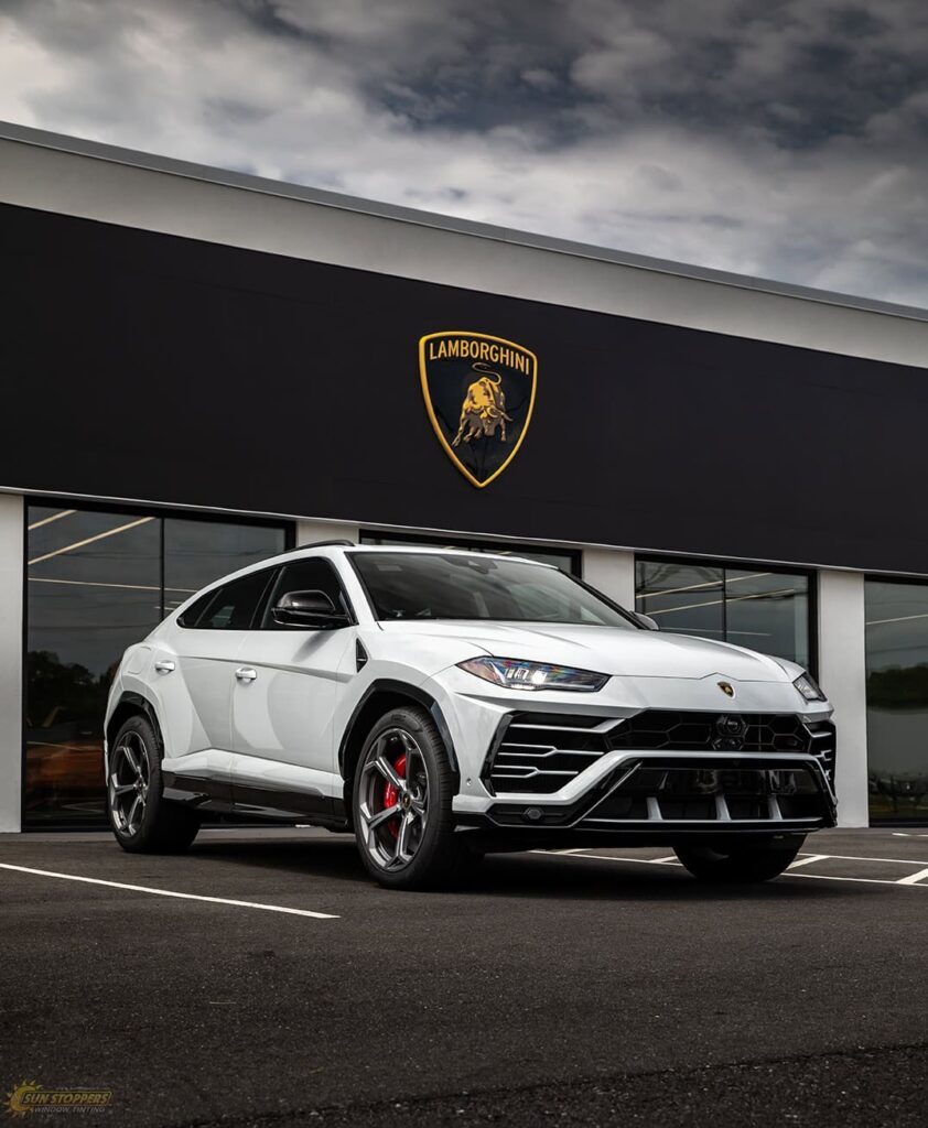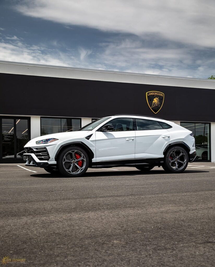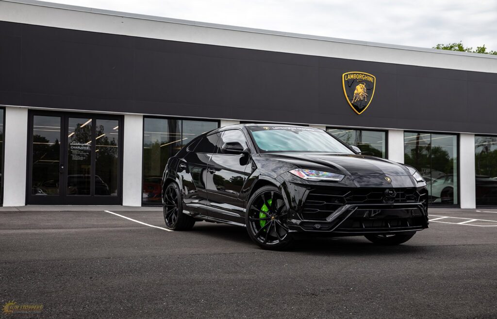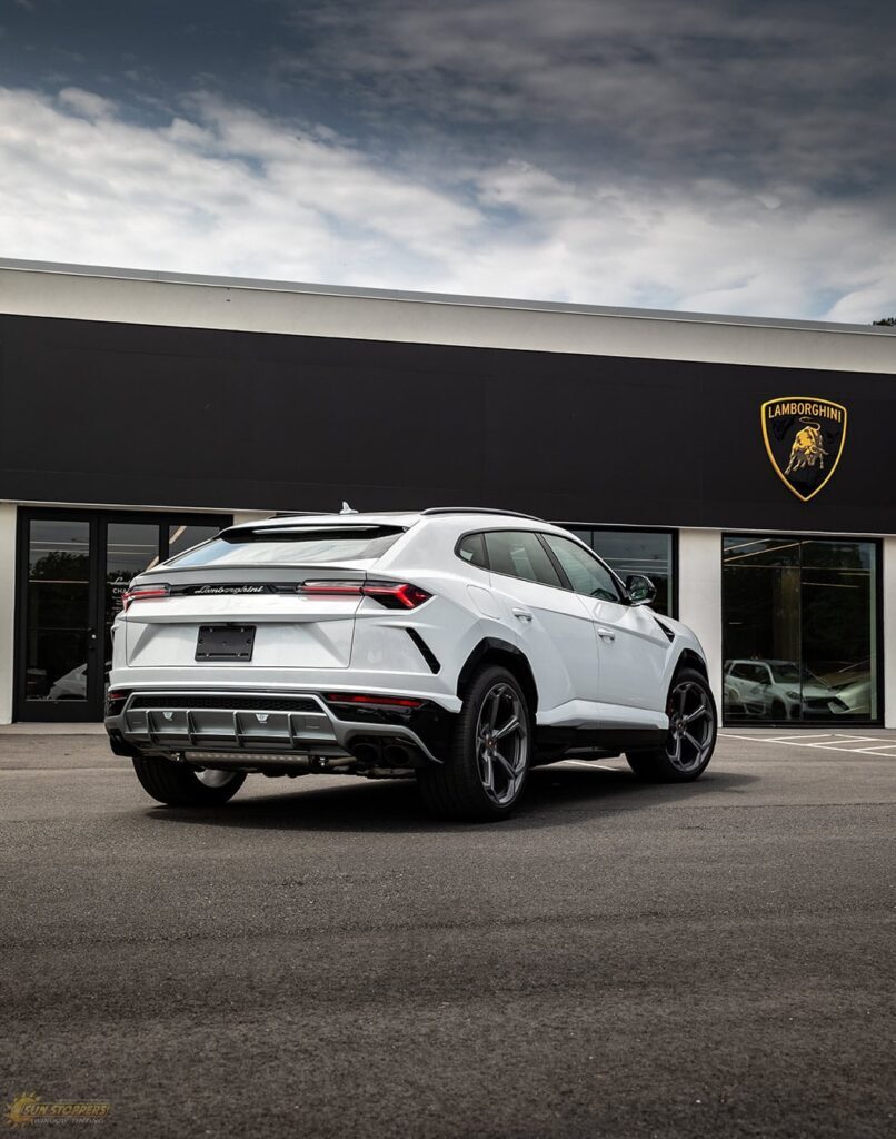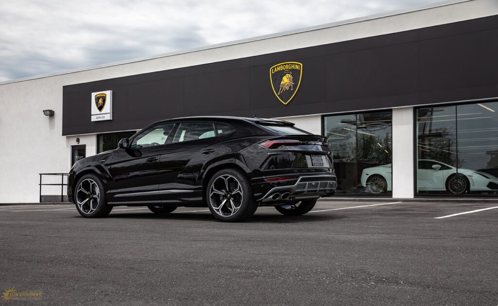 Take a look at this beautiful window tint job on this Lamborghini Urus! When you are looking to keep your Lamborghini more private, and reduce sun glare in your eyes while driving – then you need Lamborghini Urus window tinting services from Sun Stoppers!