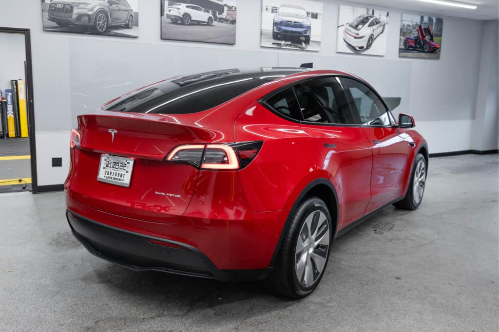 Take a look at this beautiful window tint job on this red Tesla Model Y in Lake Norman! When you are looking to keep your Model Y cooler, more private, and reduce sun glare in your eyes while driving – then you need Tesla Model Y window tinting services from Sun Stoppers!