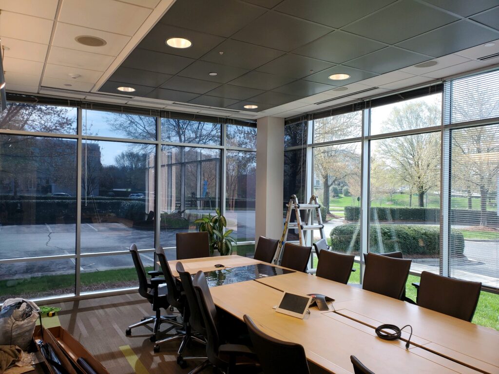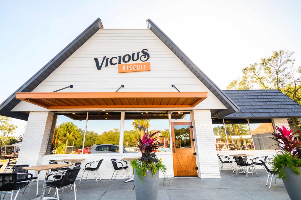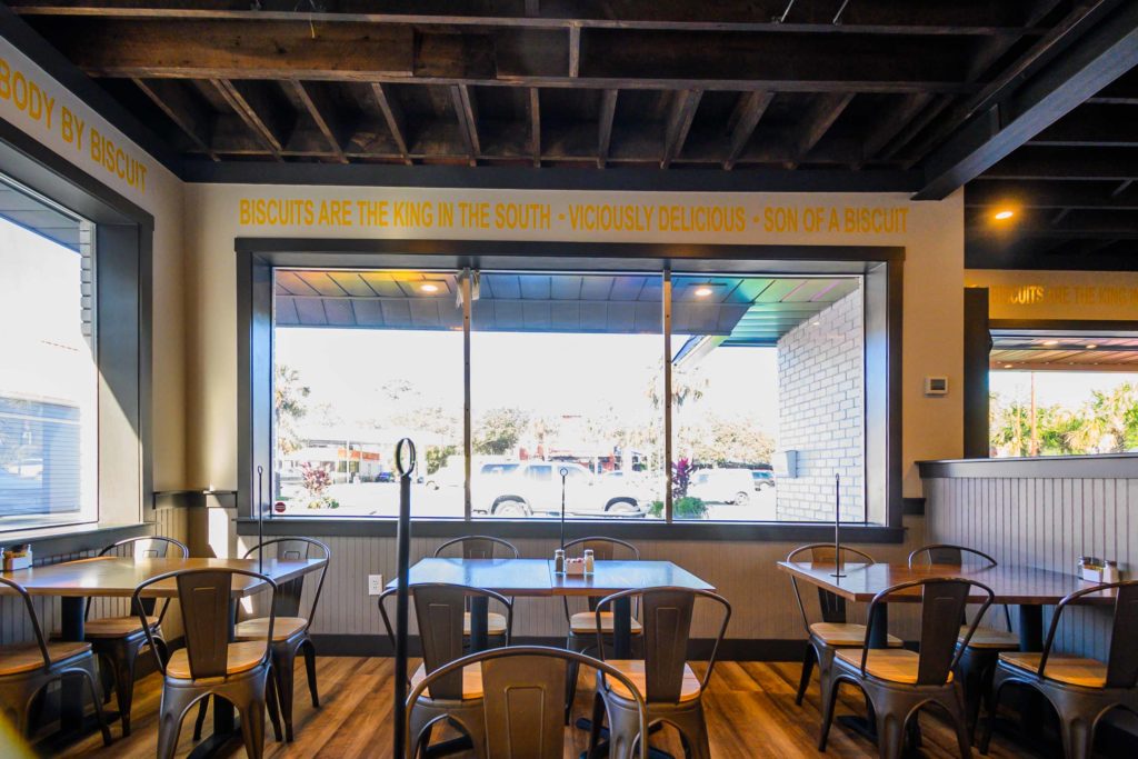 Vicious Biscuit in Charleston, SC tinted with XPEL One Way and installed roller shades by Sun Stoppers Charleston