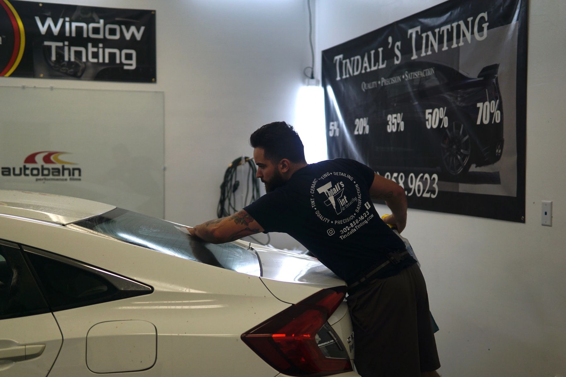 Sun Stoppers Milton offers it all from automotive, residential, and commercial window tinting, to detailing and ceramic coating. Most customers text, Instagram, Snapchat, or Facebook message us to set up an appointment. It takes two hours to tint all the sides and back glass on a standard 4 door car. Stop by today to meet the team!
